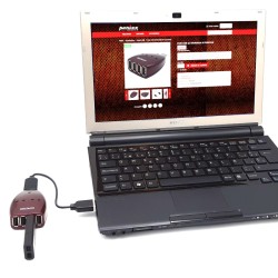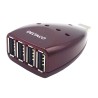 Hub USB 2.0 color burdeos de 4 puertos. Hasta 480 Mbps. Cable prolongador de 15 cm. El Hub tiene LEDs indicadores en cada puerto. Protección contra sobrecorriente. Plug & Play Windows/Mac